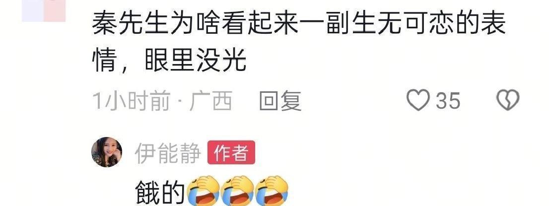 第二层,是“工作模式”与“生活模式”的切换,从一天的拍摄过程来这种切换不仅在体重上,也在精神状态上,有很强的对比,一开始坐在椅子上等开工时,秦昊看上去明显没精神,眼神发散,整个人有点呆,有点蔫,像极了加班前的普通打工人,那种“还没吃饭,有点饿”的疲惫感,很真实,很日常,伊能静在旁边解释,说他是没吃饭,才显得这样,一句简单的说明,把一个“精神不佳”的状态,转成了“体力不足”的具体原因,也缓和了画面给人的压迫感。