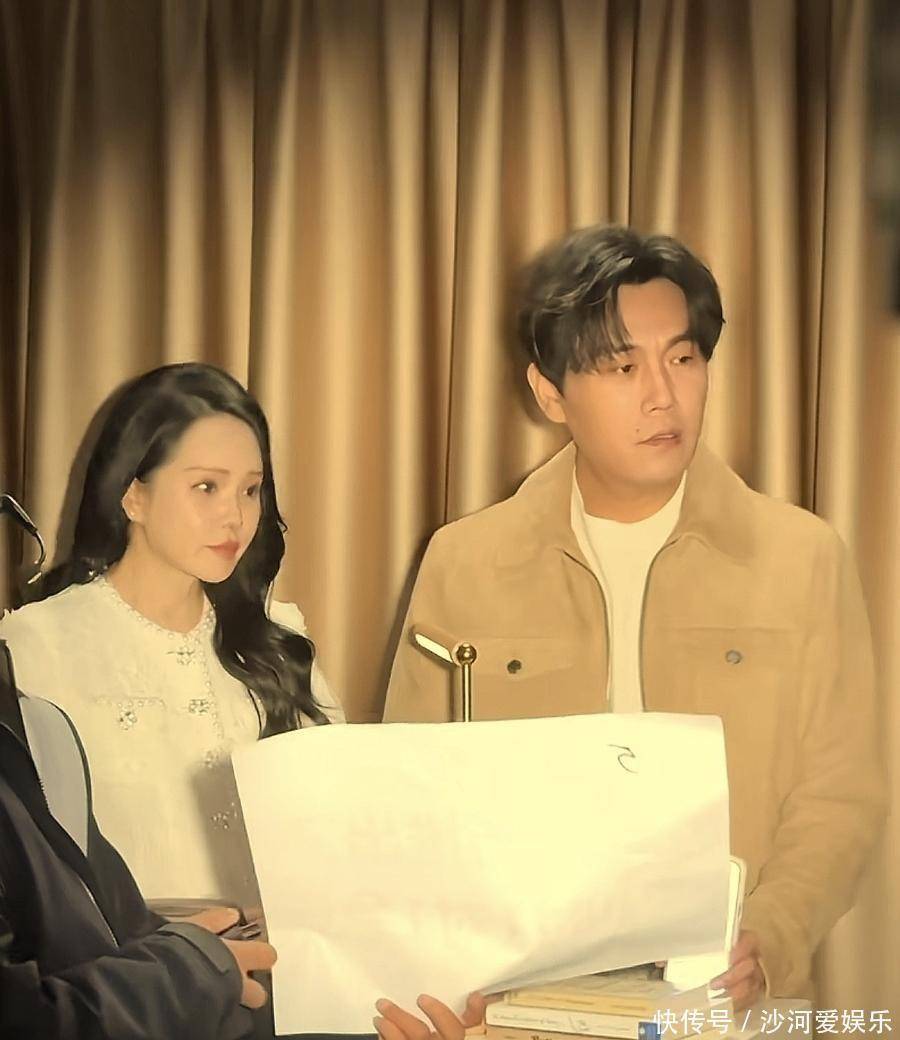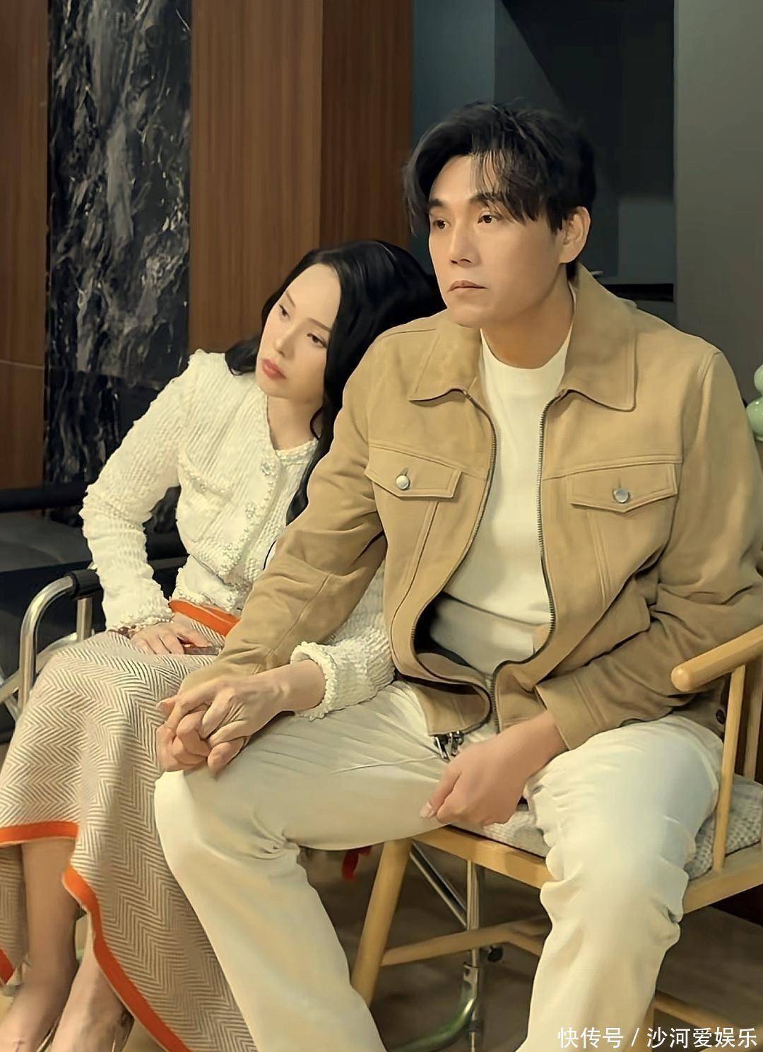 第三层,是两个人在同一空间里的“状态联动”,这对夫妻在镜头中的互动细节,构成了他们关系的可视化证据,等开工时,他们是十指紧扣地坐在一起,手没有松开,姿态却不刻意,伊能静的手白得发光,肤色和背景形成对比,不经意间突出了她在画面中的存在感,而秦昊即便略显无精打采,也没有把手抽离,两个人的身体接触与情绪状态并不完全同步,一方略疲惫,另一方稍明亮,但他们保持着物理上的连接,这和很多团队合作很相似,一个人状态低时,如果另一个人能提供一点稳定的支撑,整体就不会失衡。